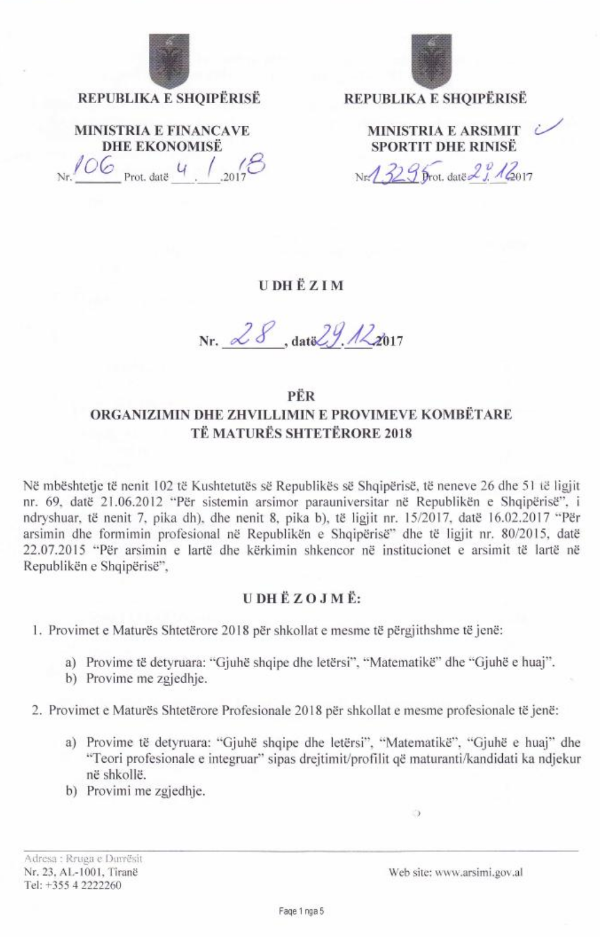 Matura Shteterore 2018 - ZA MIRDITE