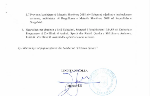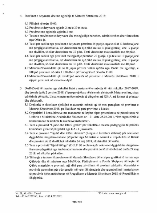 Udhezim mbi datat dhe organizimin e Provimeve te Matures 2018 - ZA MIRDITE